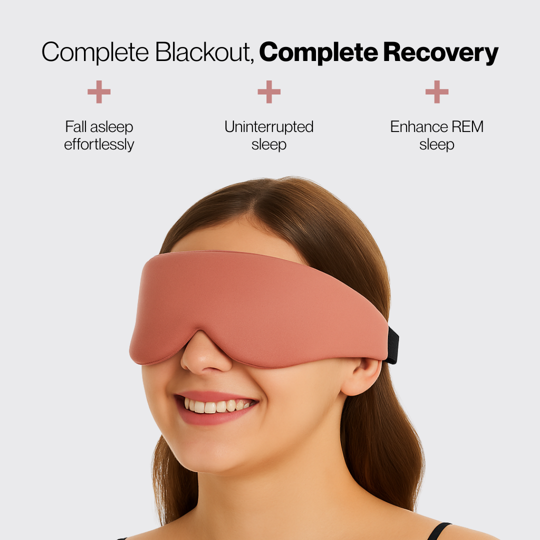 The Glowze Sleep Mask is expertly contoured to block out light completely without putting pressure on your eyes. It helps improve sleep quality, reduce puffiness, and support deep rest whether you're at home or on the go.